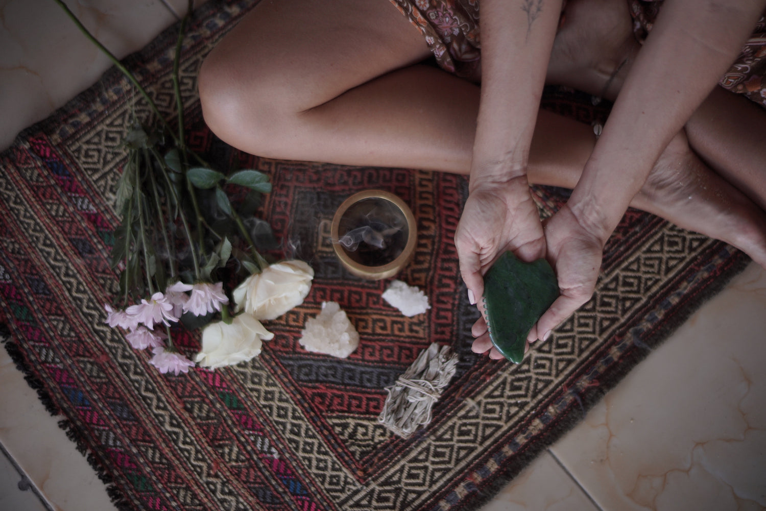 AMA Gua Sha es una piedra de jade neferirita diseñada por Valentina Costa y tallada a mano en Bali, Indonesia, por artesanos locales.